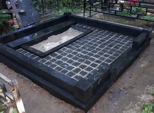 Мощение гранитной брусчаткой поверхности могилы,