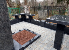 Сразу же после установки надгробья мы приступаем а облицовке бетонного периметра плитами из полированного гранита.